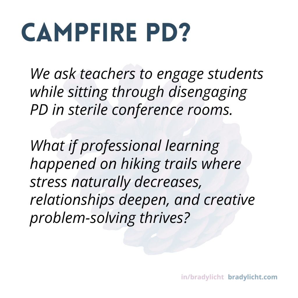 What excites me about outdoor professional development is its potential to address root causes rather than symptoms. Instead of trying to motivate burned-out teachers through traditional presentations, we’re creating conditions that naturally restore energy, build relationships, and inspire innovation.